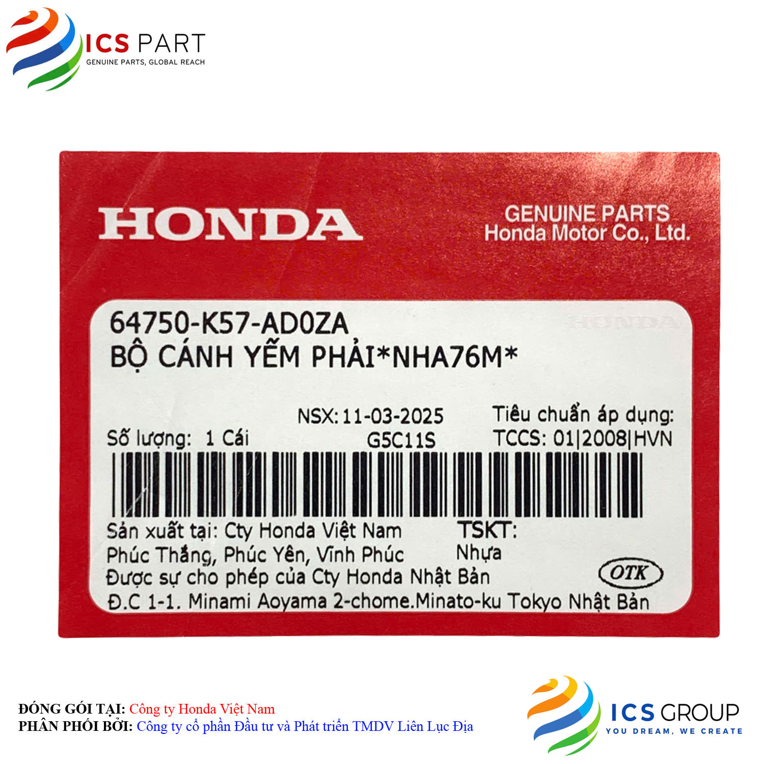 | Sản phẩm được đóng gói tại: | Nhà máy Honda - Việt Nam | |