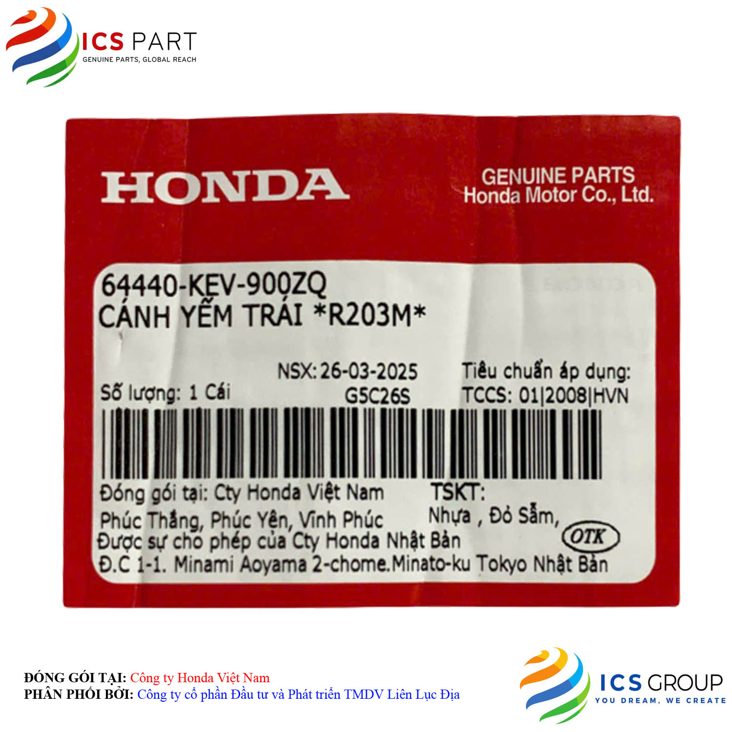 | Sản phẩm được đóng gói tại: | Nhà máy Honda - Việt Nam | |