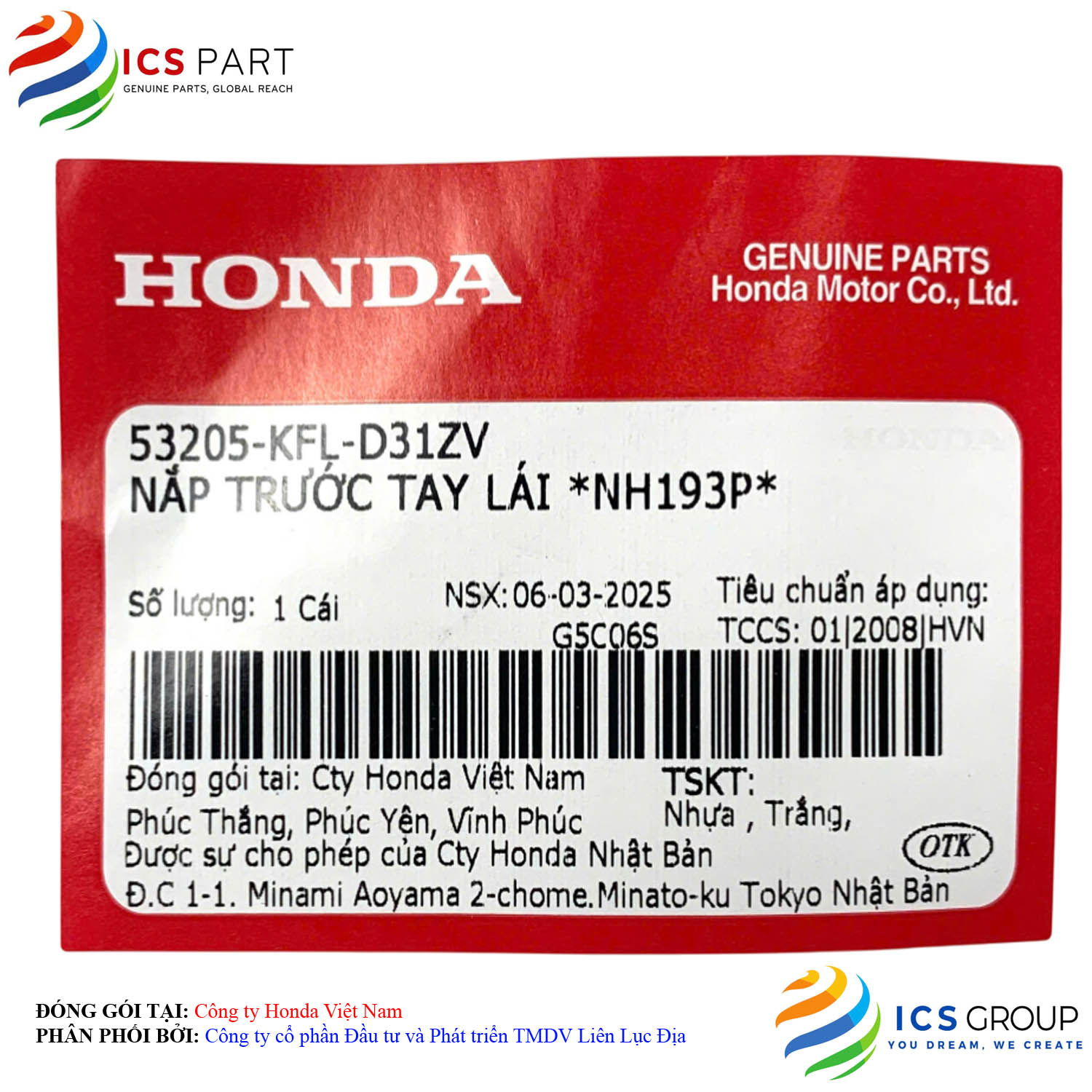 | Sản phẩm được đóng gói tại: | Nhà máy Honda - Việt Nam | |