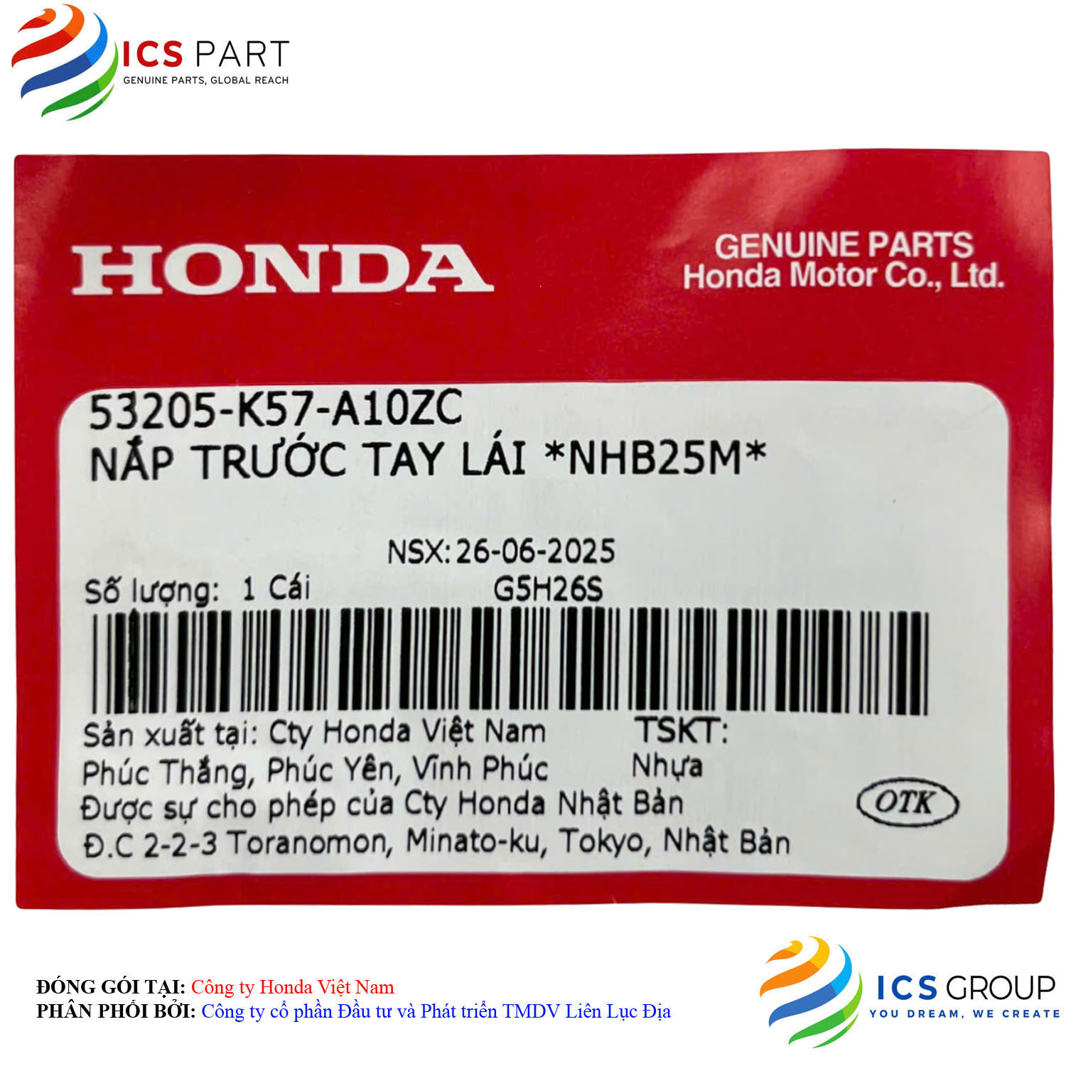 | Sản phẩm được đóng gói tại: | Nhà máy Honda - Việt Nam | |