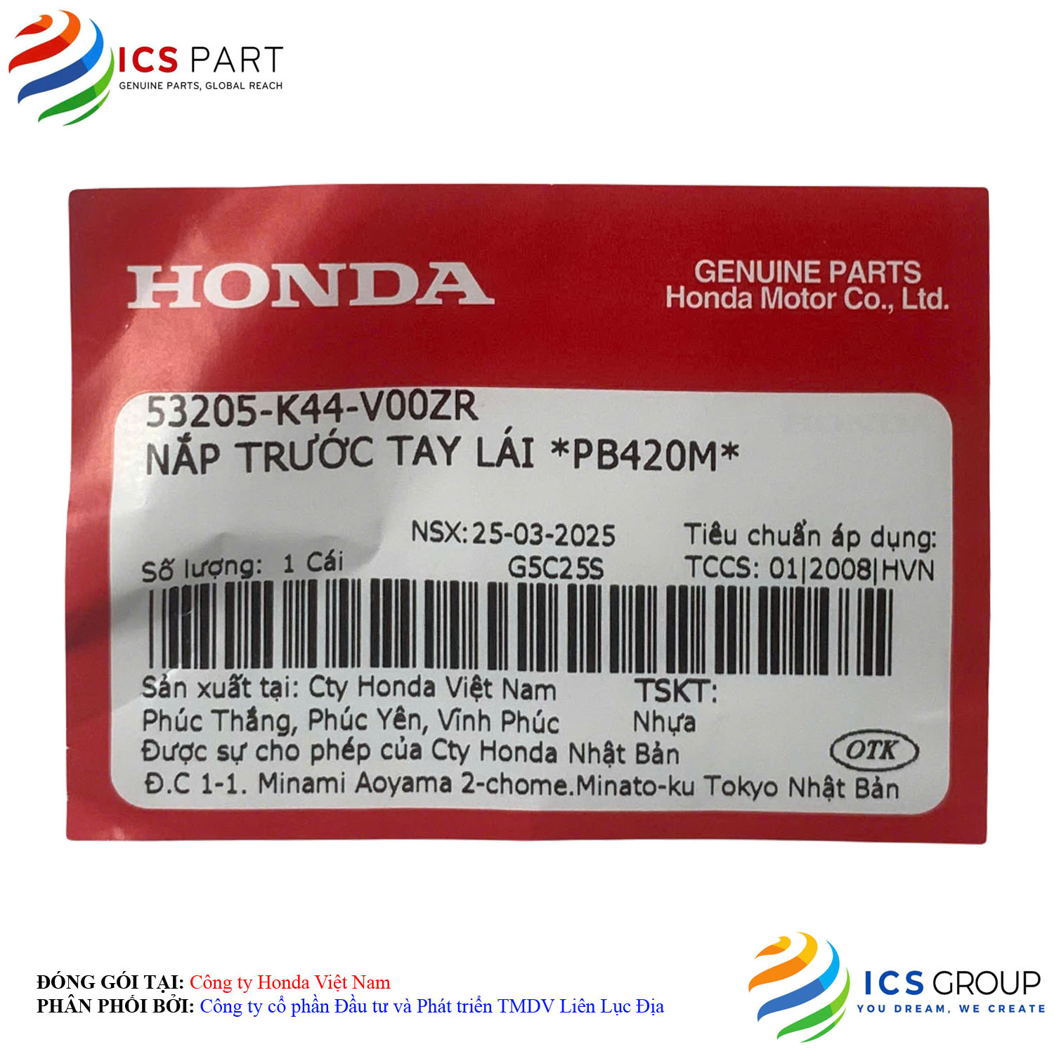 | Sản phẩm được đóng gói tại: | Nhà máy Honda - Việt Nam | |