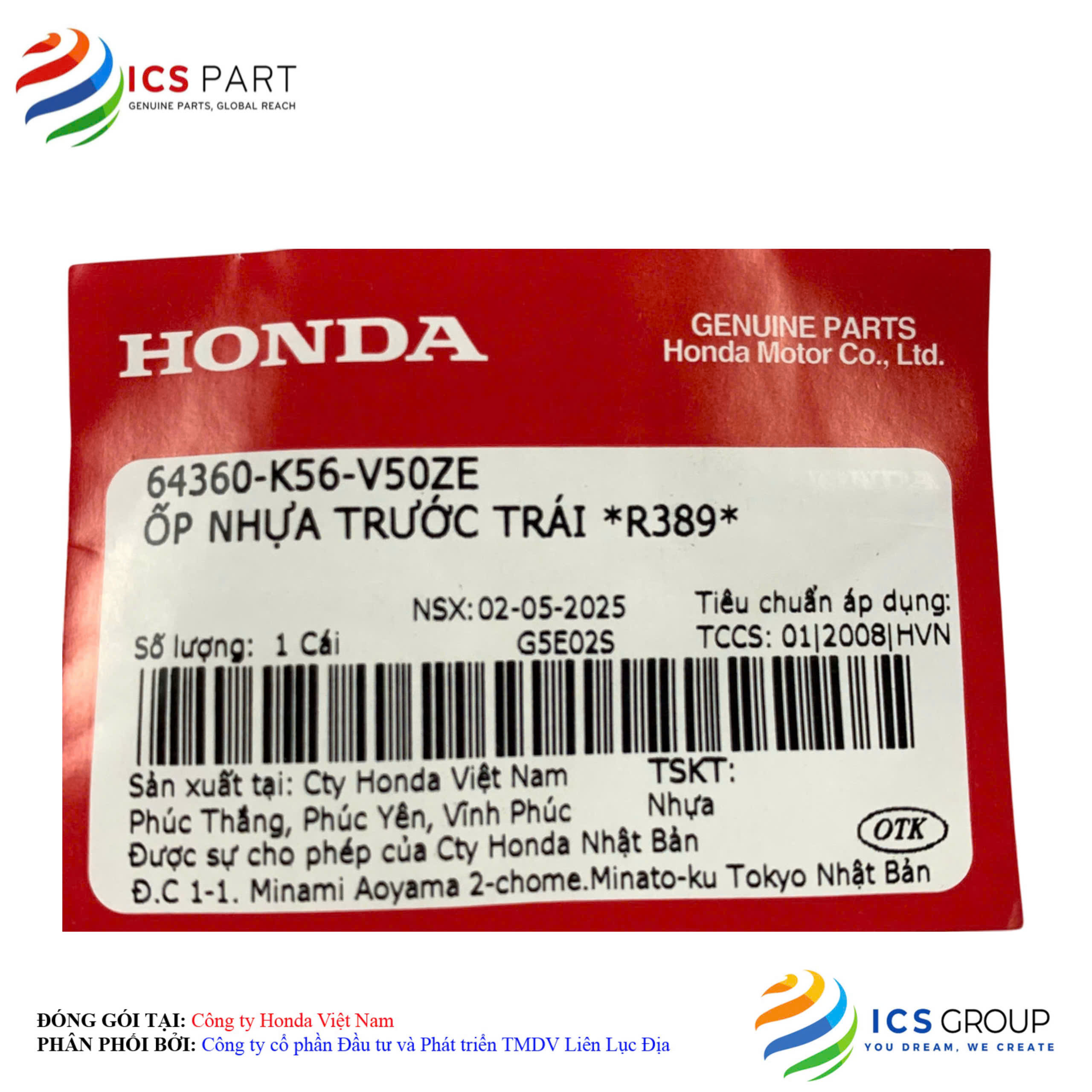 | Sản phẩm được đóng gói tại: | Nhà máy Honda - Việt Nam | |