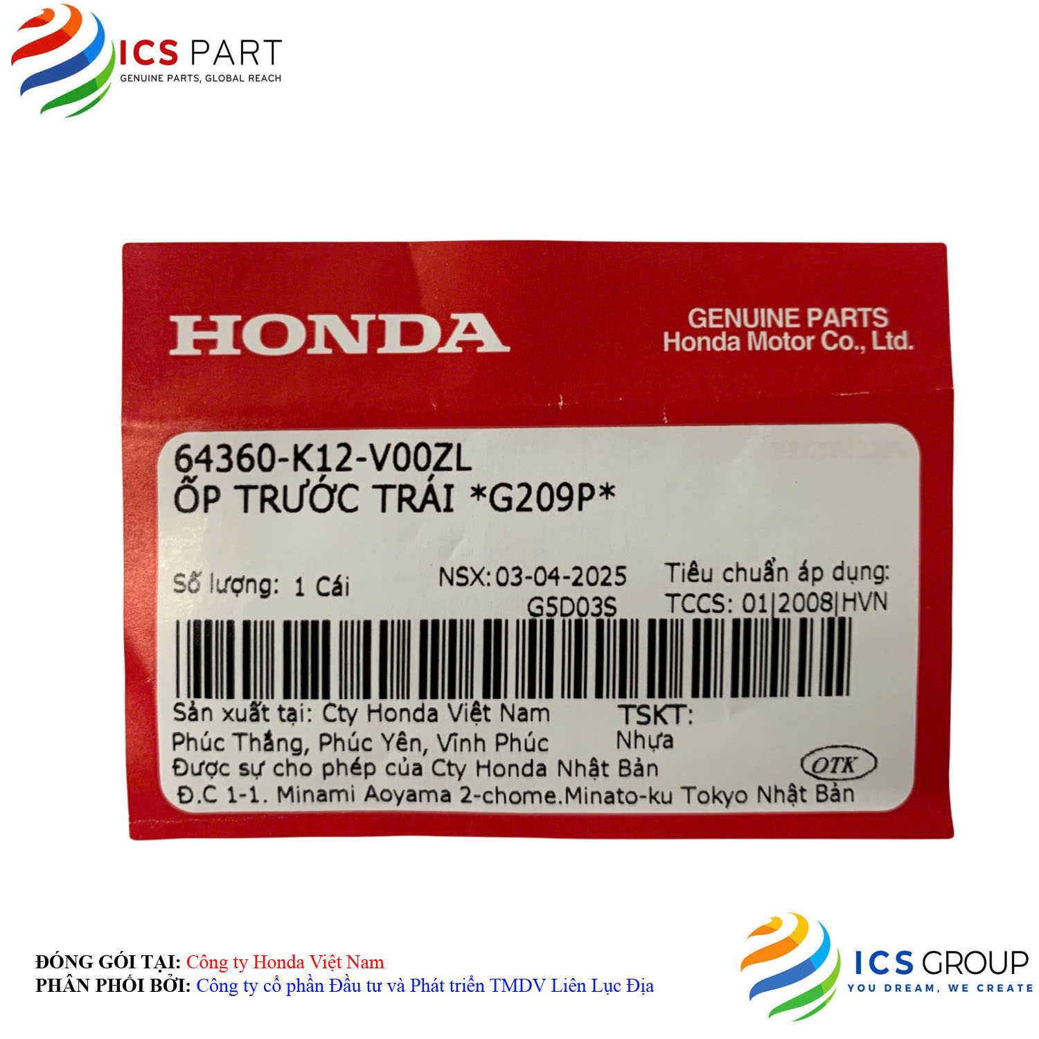| Sản phẩm được đóng gói tại: | Nhà máy Honda - Việt Nam | |