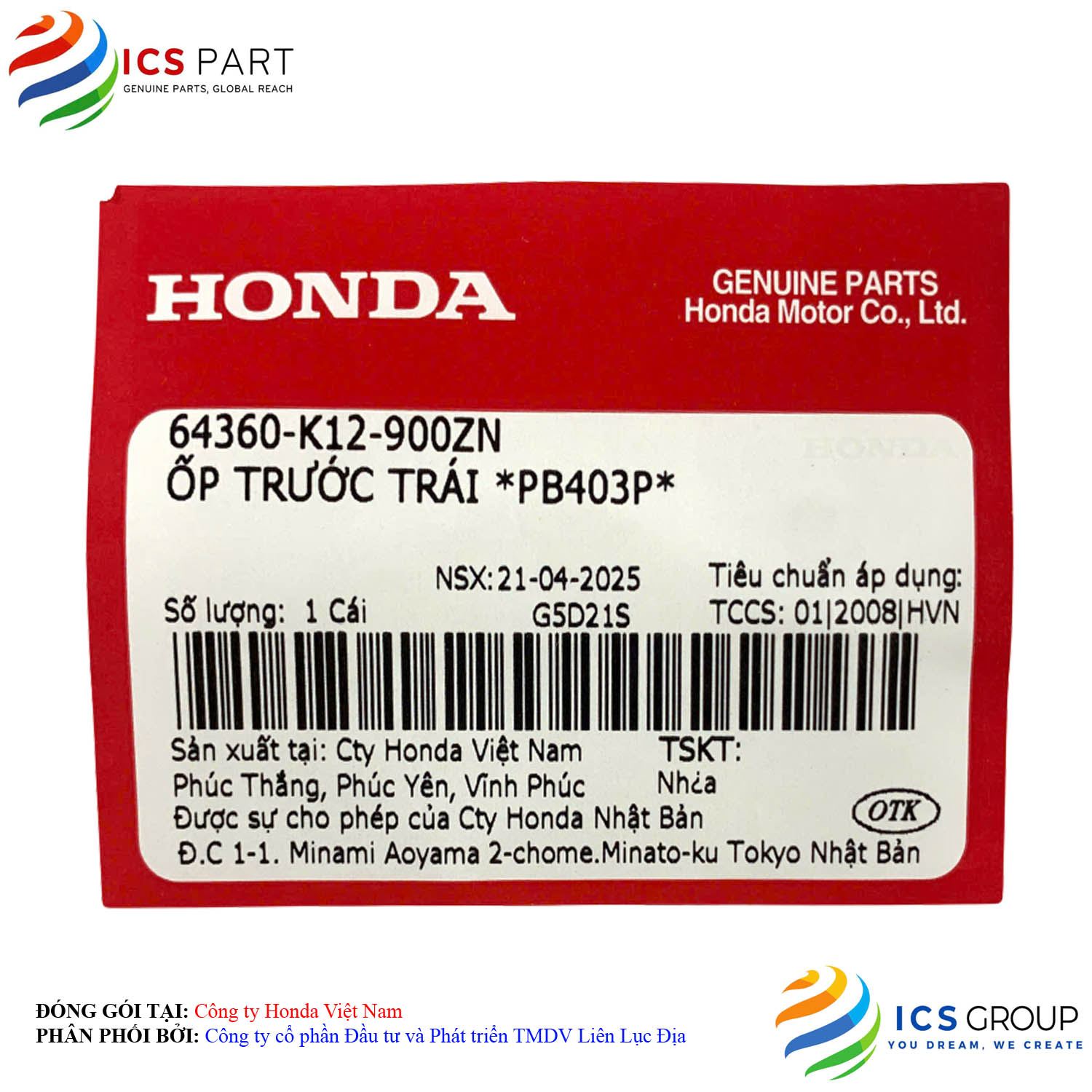 | Sản phẩm được đóng gói tại: | Nhà máy Honda - Việt Nam | |