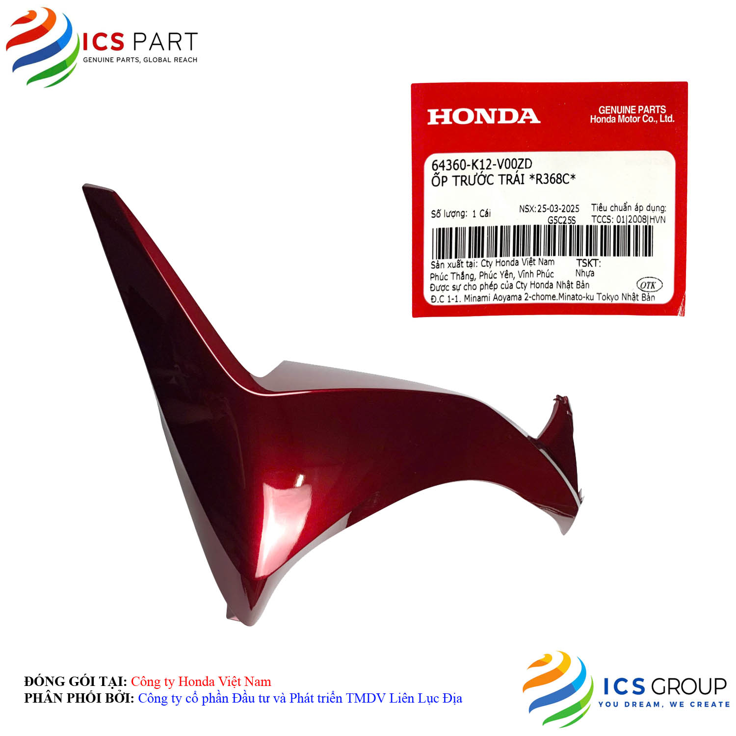 | Tên mô tả chi tiết: | Cánh Yếm, Bửng Yếm, Ốp Yếm Ngoài Trước Trái LEAD 125 K12 *R368C* Màu Đỏ Mận | ỐP TRƯỚC TRÁI *R368C* | ||