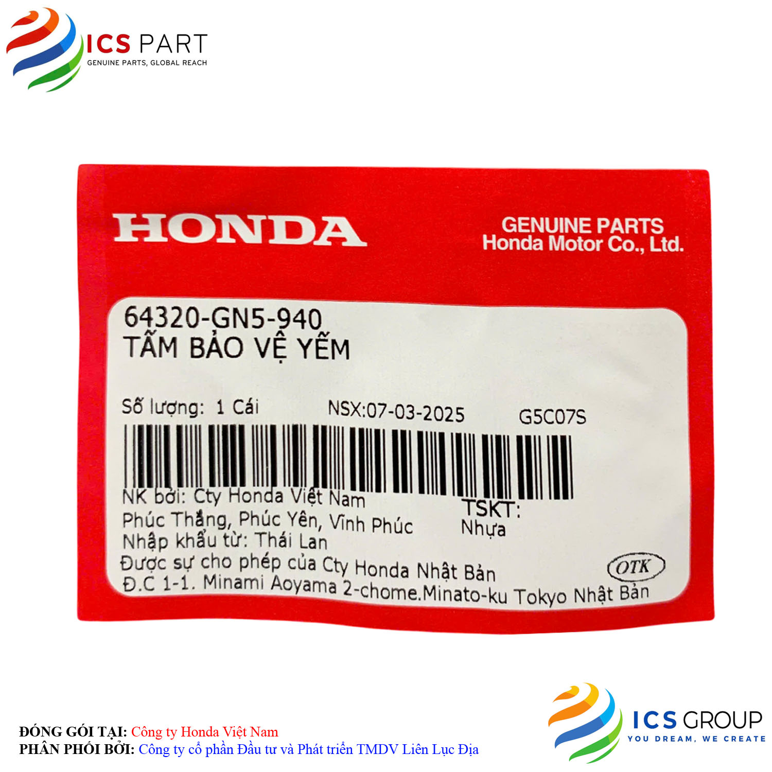 | Sản phẩm được đóng gói tại: | Nhà máy Honda - Việt Nam | |
